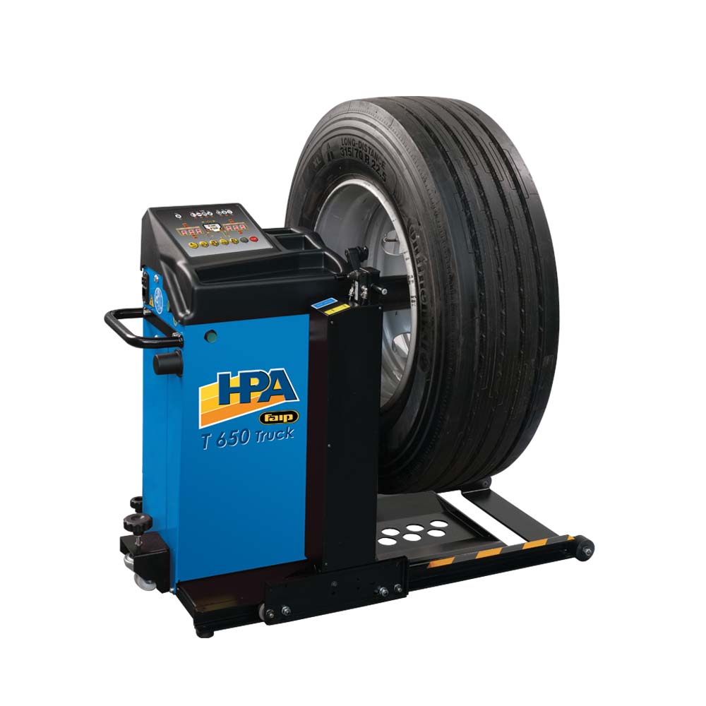 Uniwersalna, komputerowa wyważarka z napędem elektrycznym i wałkiem o średnicy 40 mm do kół samochodów ciężarowych, autobusów oraz samochodów osobowych i dostawczych z wyświetlaczem cyfrowym, wbudowaną windą pneumatyczną oraz pneumatycznym hamulcem.
