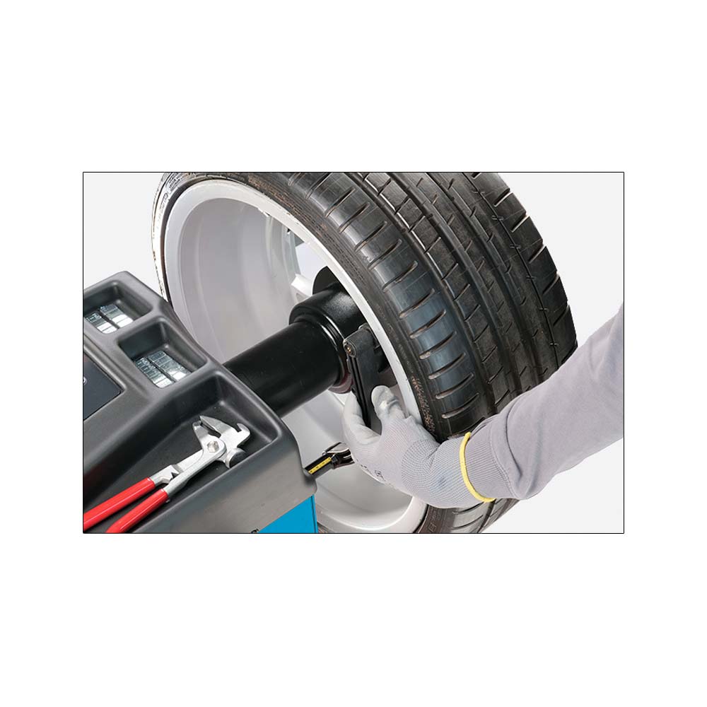 Wyważarka posiada na wyposażeniu standardowym zestaw stożków KCT oraz nakrętkę ręczną GFR do mocowania koła na wale urządzenia.